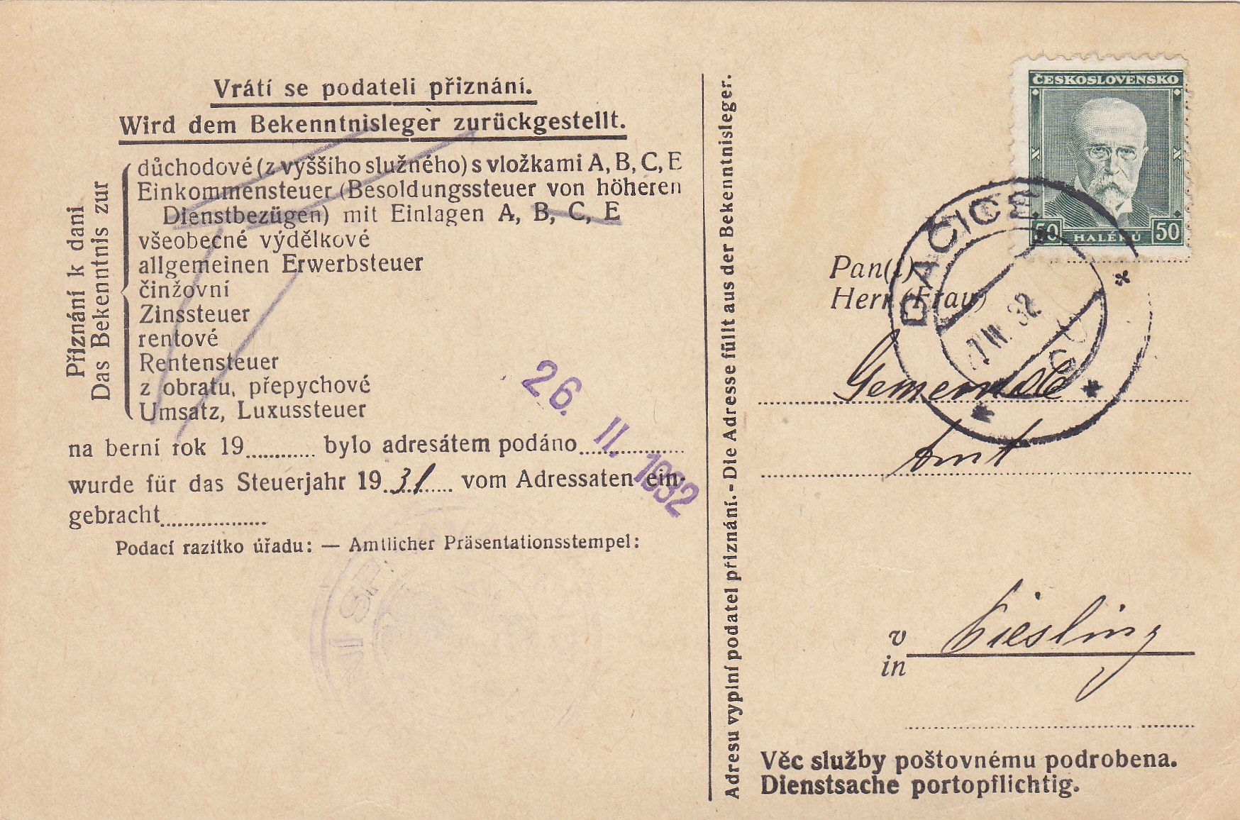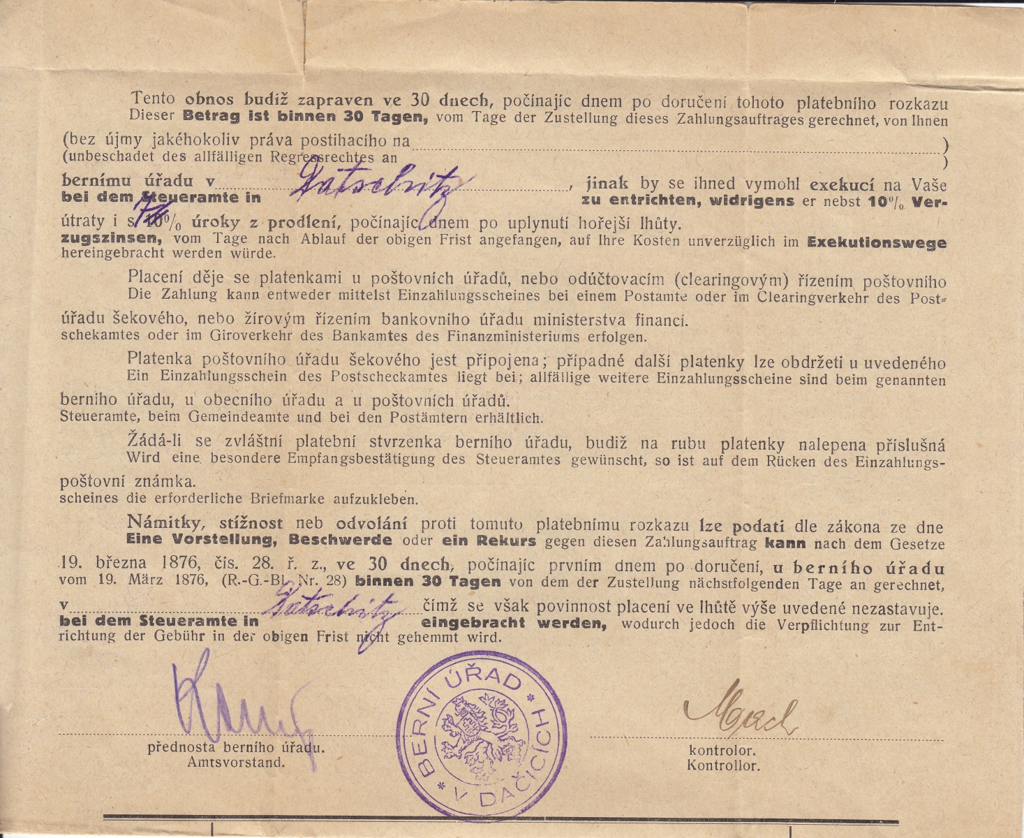 Poštovní historie Dačice Datschitz